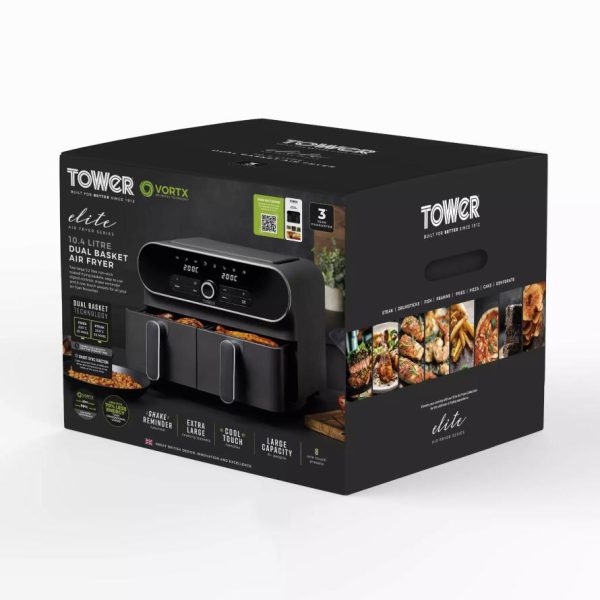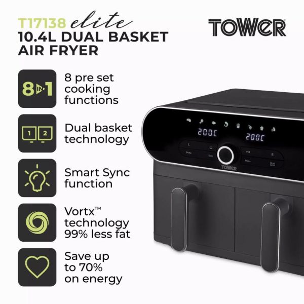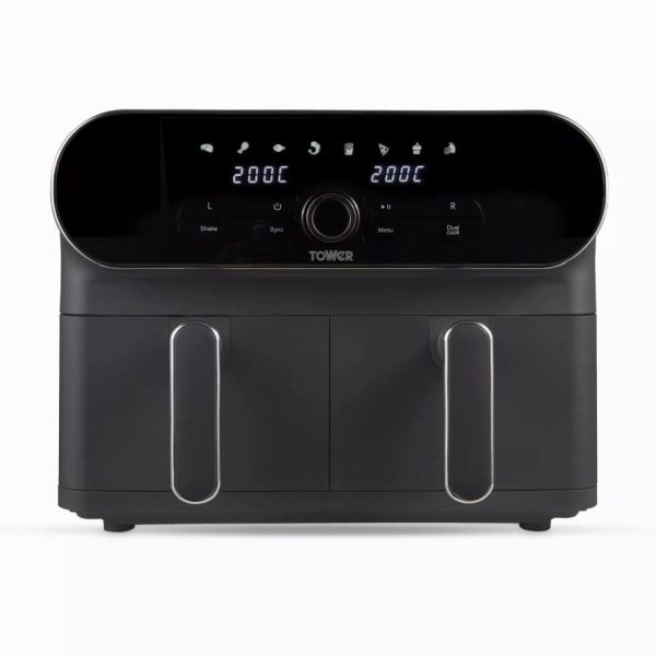 Air Fryers/Kitchen Vortx Litre Dual Basket Air Fryer Black | Tower Housewares Dual Basket Air Fryers
