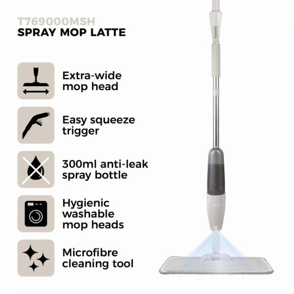 Floorcare/Homeware Classic Microfibre Spray Mop With Anti-Leak Bottle Latte | Tower Housewares Mops