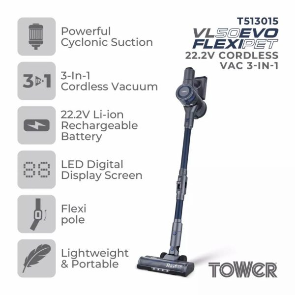Floorcare VL Flexi Anti Tangle Cordless Vacuum Aqua | Tower Housewares Cordless Vacuum Cleaners