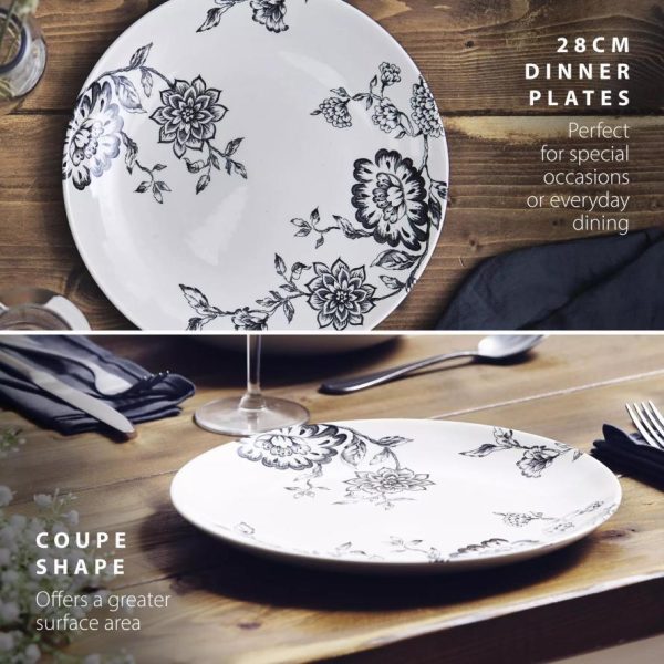 Homeware Botanical Night Dinner Plate Set Black | Tower Housewares Dinnerware quantity