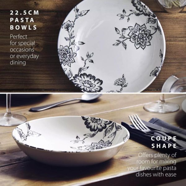 Homeware Botanical Night Pasta Bowl Set Black | Tower Housewares Dinnerware quantity
