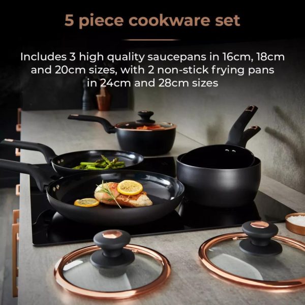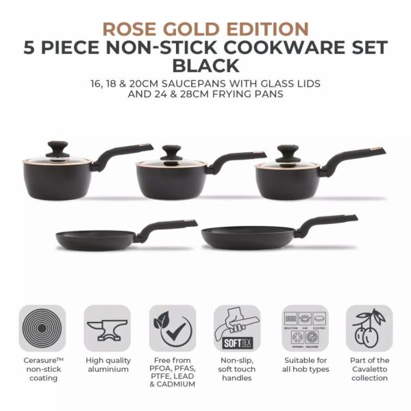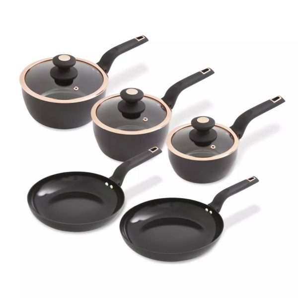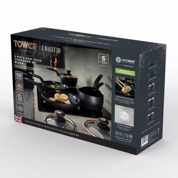 Homeware Cavaletto Piece Cookware Set Black | Tower Housewares Pan Sets