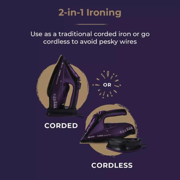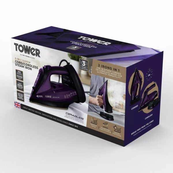 Homeware Ceraglide Cord Cordless Iron Purple | Tower Housewares Cordless Irons
