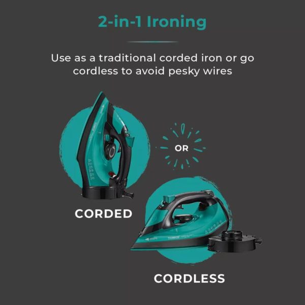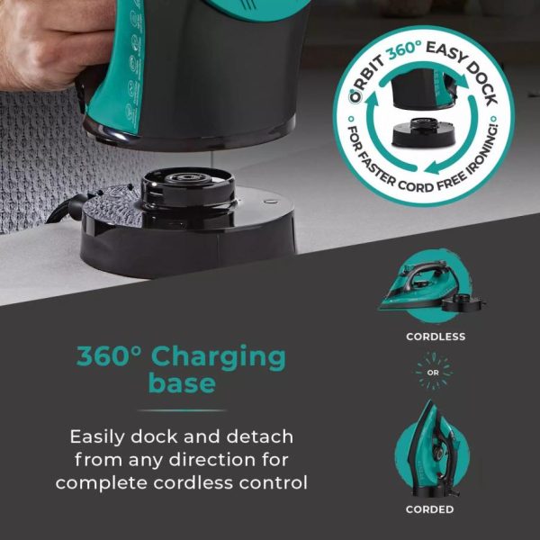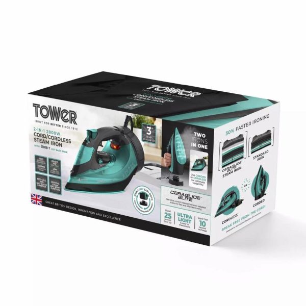 Homeware Ceraglide Cord Cordless Steam Iron Teal Teal | Tower Housewares Cordless Irons