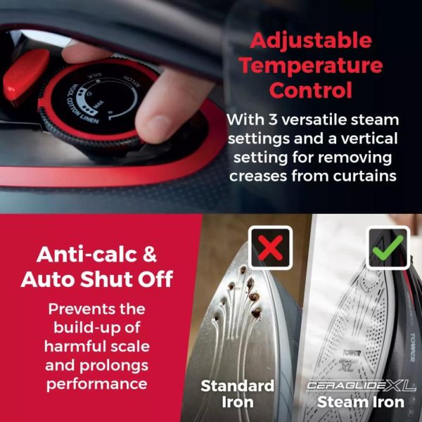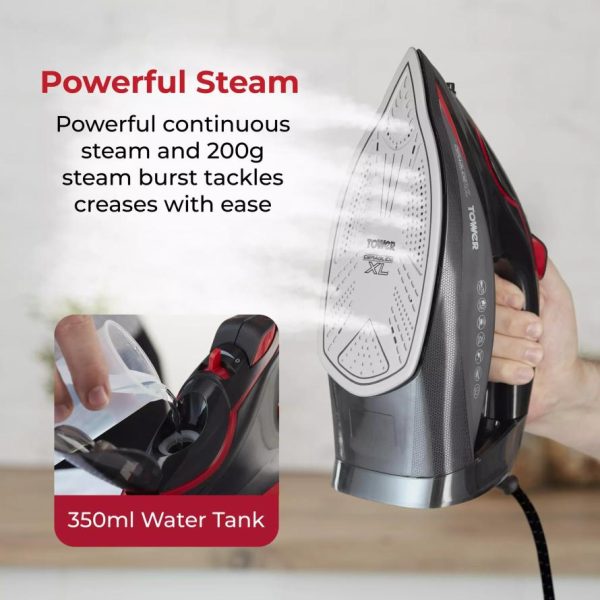 Homeware Ceraglide Steam Iron XL Soleplate Red | Tower Housewares Corded Irons