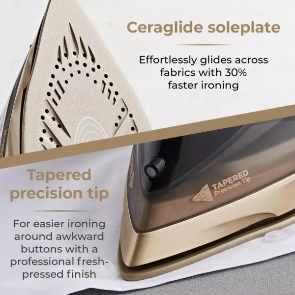 Effortlessly glide through fabrics with the ceramic coated soleplate