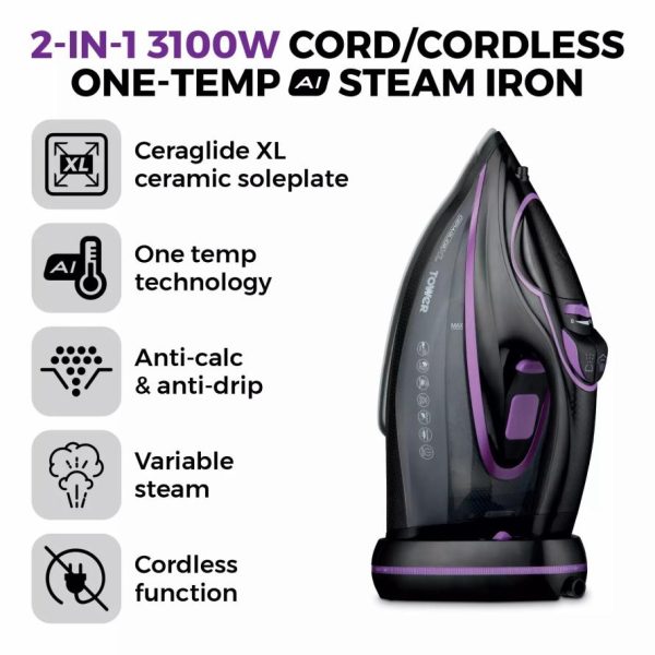 Homeware Ceraglide Cord Cordless Steam Iron Teal Teal | Tower Housewares Cordless Irons