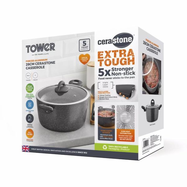 Homeware Cerastone cm Casserole Graphite Graphite | Tower Housewares Casserole Pots quantity