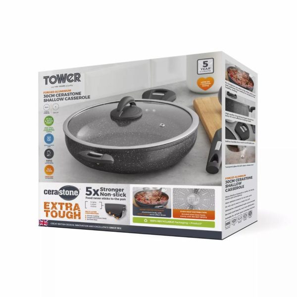 Homeware Cerastone cm Low Casserole Graphite | Tower Housewares Casserole Pots quantity