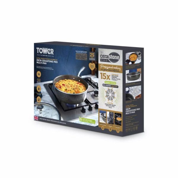 Homeware Cerastone Pro cm Multi-Pan With Lid Graphite | Tower Housewares Saute Pans quantity