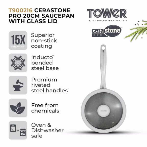 Homeware Cerastone Pro cm Saucepan With Glass Lid Graphite | Tower Housewares Pots & Pans quantity