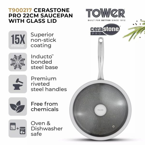 Homeware Cerastone Pro cm Saucepan With Glass Lid Graphite | Tower Housewares Pots & Pans quantity