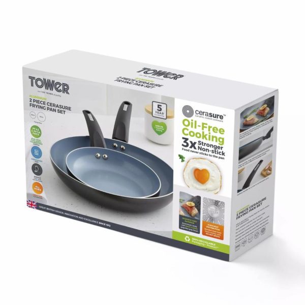Homeware Cerasure Piece Frying Pan Set Graphite Graphite | Tower Housewares Pan Sets