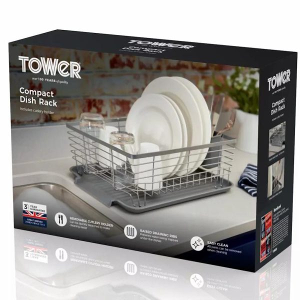 Homeware Compact Dishrack W/Cutlery Holder Grey | Tower Housewares Dish Racks & Drainers