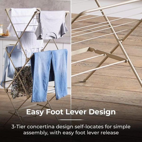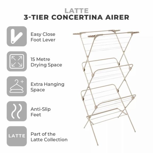 Homeware Concertina Airer Latte | Tower Housewares Clothes Airers