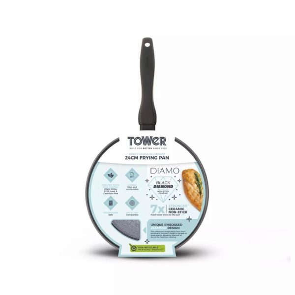 Homeware Diamo cm Frying Pan With Black Diamond Coating Black | Tower Housewares Frying Pans quantity