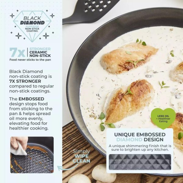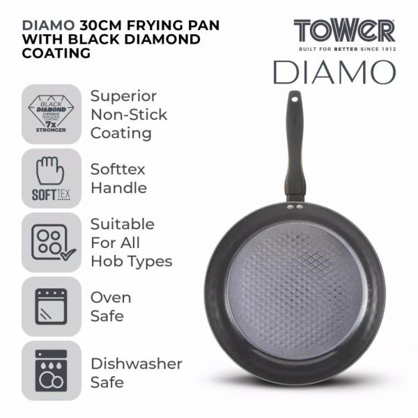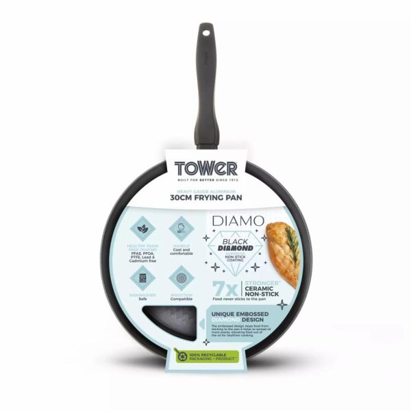 Homeware Diamo cm Frying Pan With Black Diamond Coating Black | Tower Housewares Frying Pans quantity