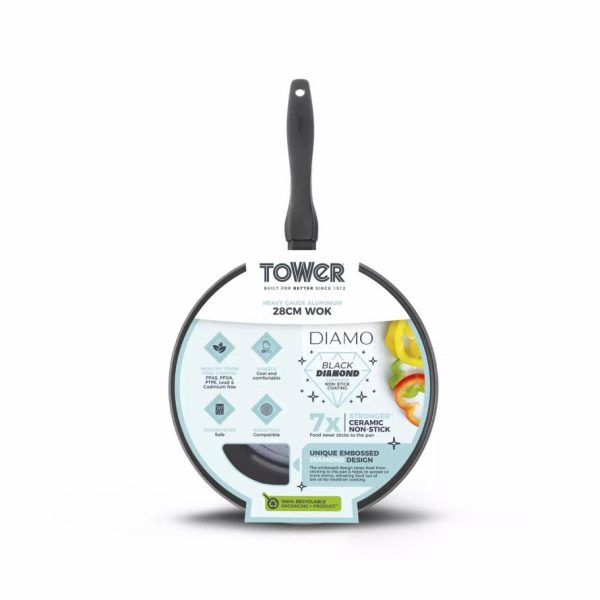 Homeware Diamo cm Wok With Black Diamond Coating Black | Tower Housewares Frying Pans quantity