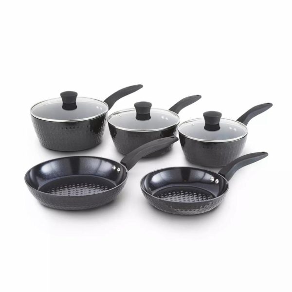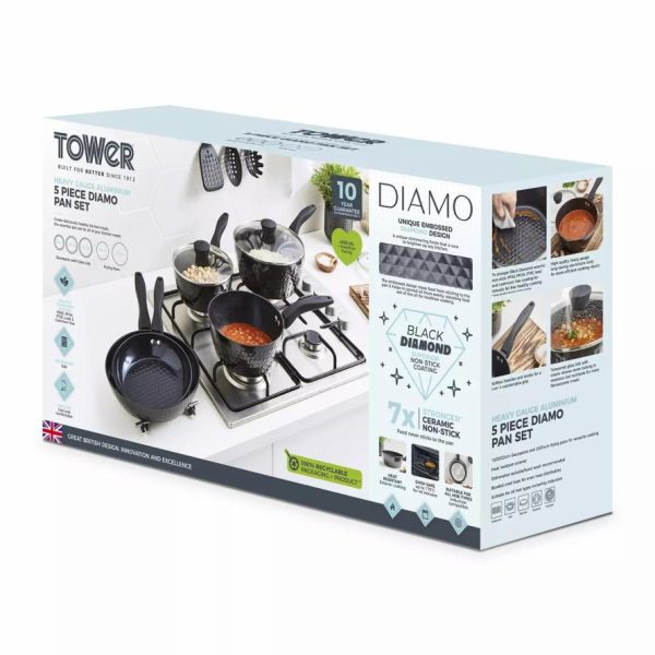 Homeware Diamo Piece Cookware Set With Black Diamond Coating Black | Tower Housewares Pots & Pans