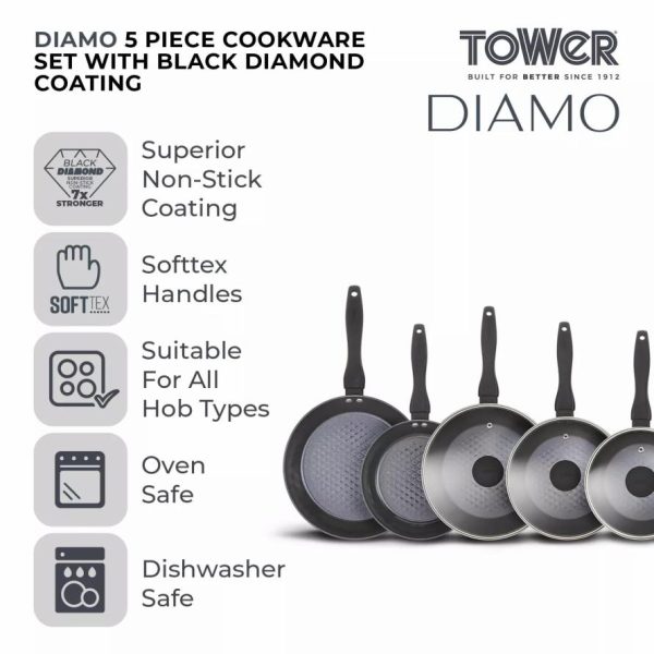 Homeware Diamo Piece Cookware Set With Black Diamond Coating Black | Tower Housewares Pots & Pans quantity
