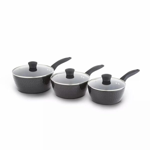 Homeware Diamo Piece Saucepan Set With Black Diamond Coating Black | Tower Housewares Pots & Pans