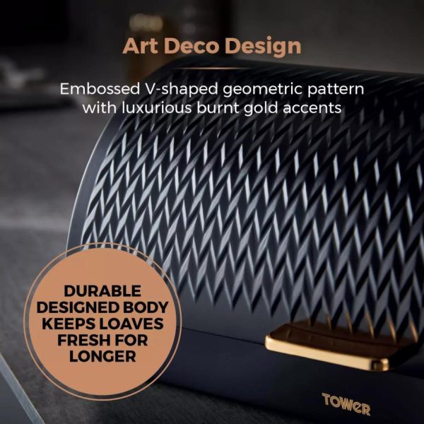 Homeware Empire Roll Top Bread Bin Black | Tower Housewares Bread Bins quantity