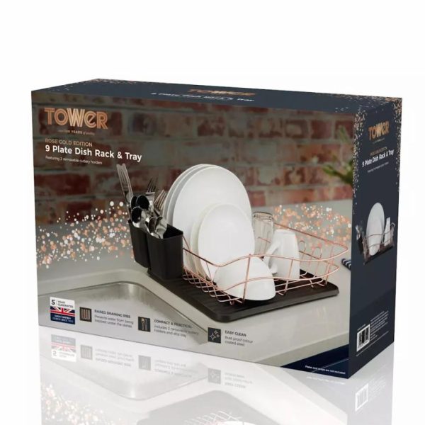 Homeware Essentials Dish Rack With Tray Black | Tower Housewares Dish Racks & Drainers