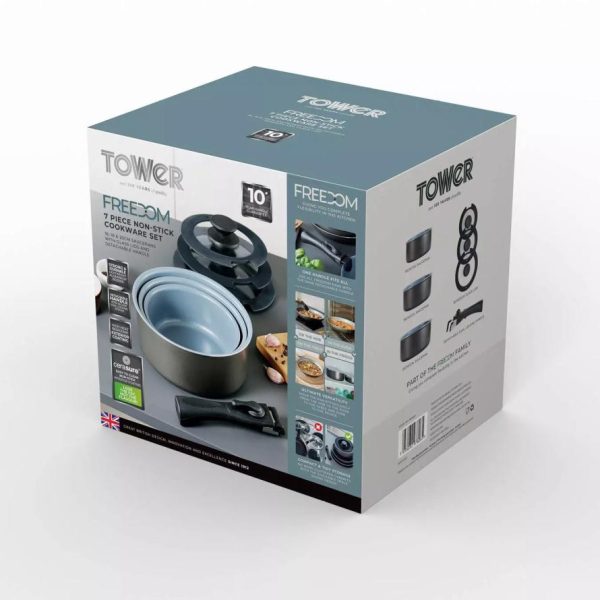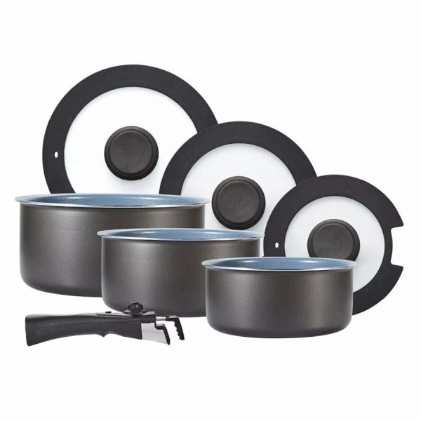 Homeware Freedom Piece Cookware Set With Detachable Handle Graphite | Tower Housewares Pan Sets quantity