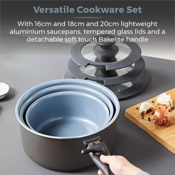 Homeware Freedom Piece Cookware Set With Detachable Handle Graphite | Tower Housewares Pan Sets