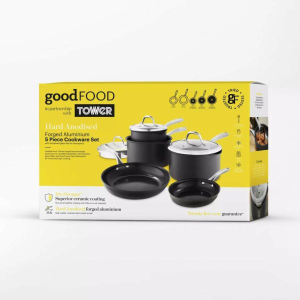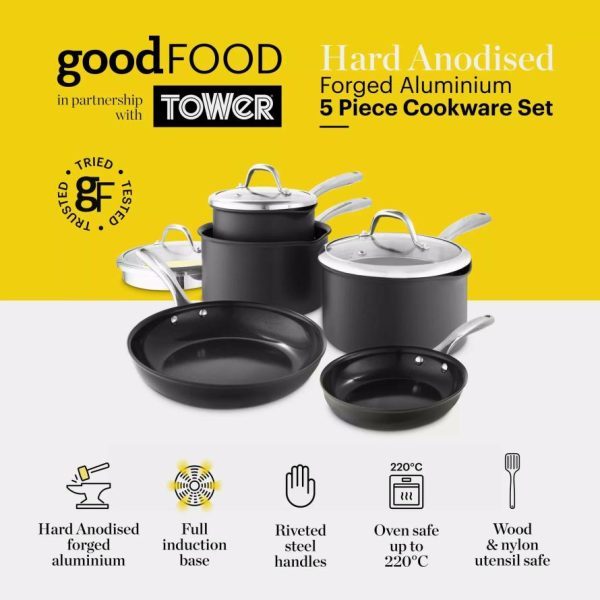 Homeware Good Food Piece Cookware Set Grey | Tower Housewares Pan Sets