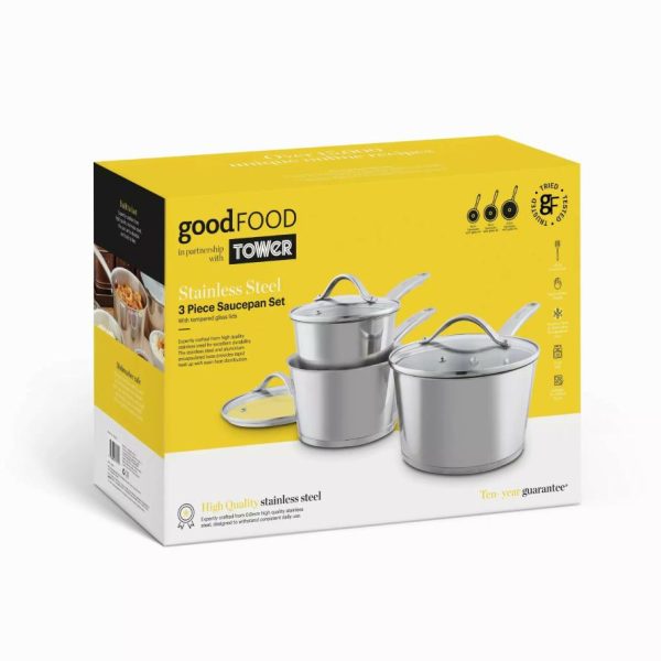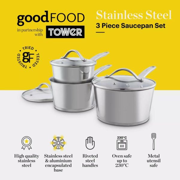 Homeware Good Food -Piece Saucepan Set Stainless Steel | Tower Housewares Pan Sets