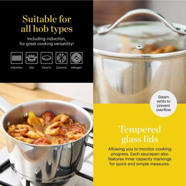 Homeware Good Food -Piece Saucepan Set Stainless Steel | Tower Housewares Pan Sets quantity