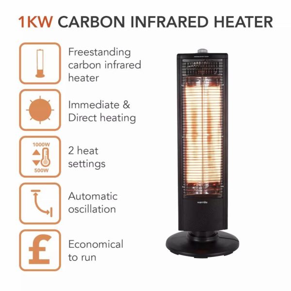 Homeware KW Carbon Heater With Oscillation Black | Tower Housewares Halogen Heaters