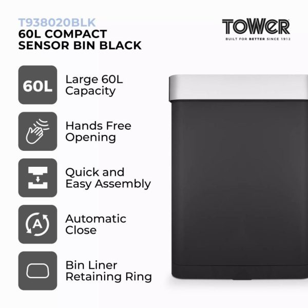Homeware Litre Compact Sensor Bin Black | Tower Housewares Waste Bins quantity