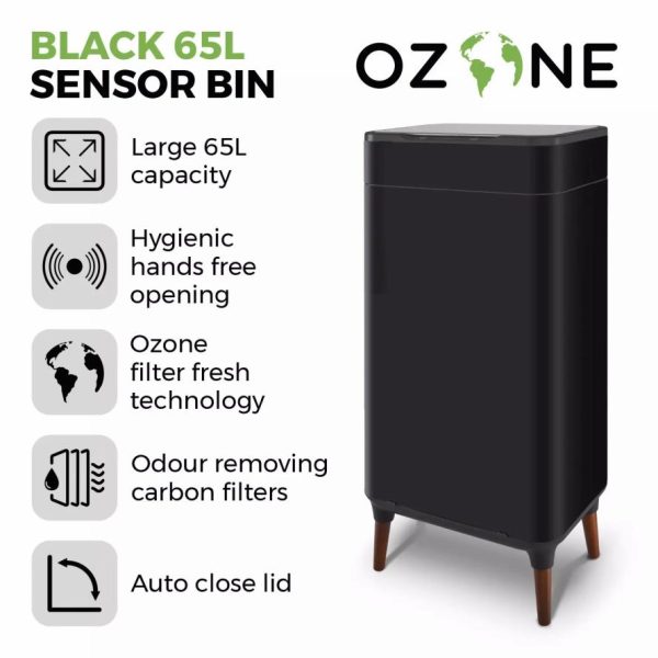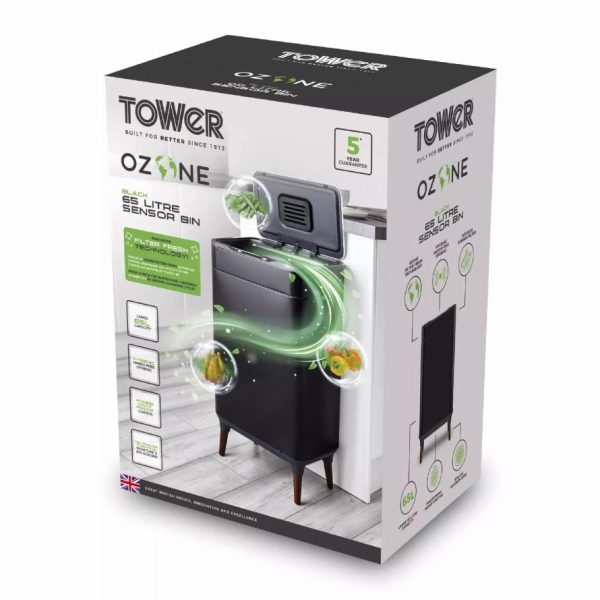 Homeware Litre Ozone Sensor Bin Black | Tower Housewares Waste Bins quantity