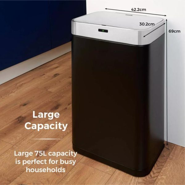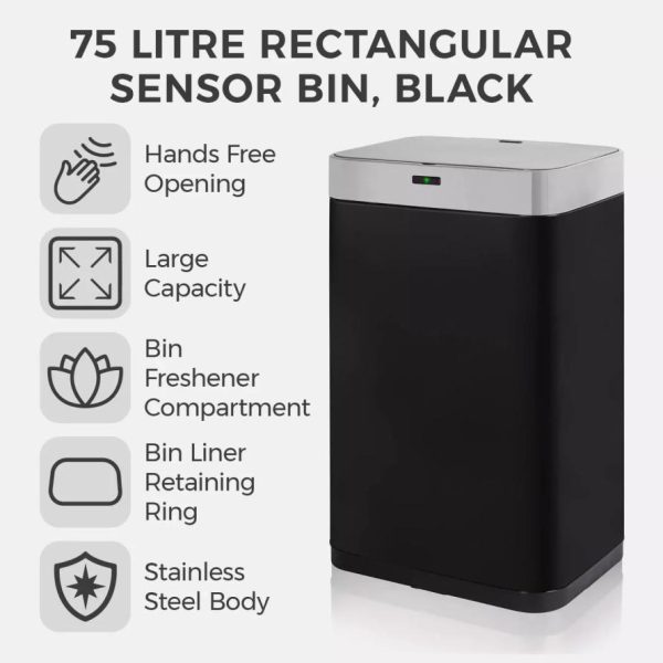 Homeware Litre Rectangular Sensor Bin Black | Tower Housewares Waste Bins quantity