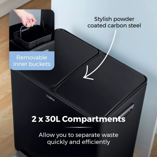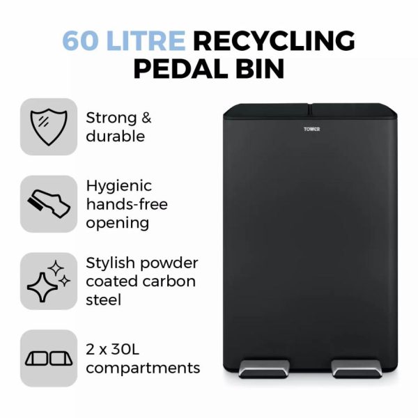 Homeware Litre Recycling Pedal Bin Black | Tower Housewares Waste Bins quantity