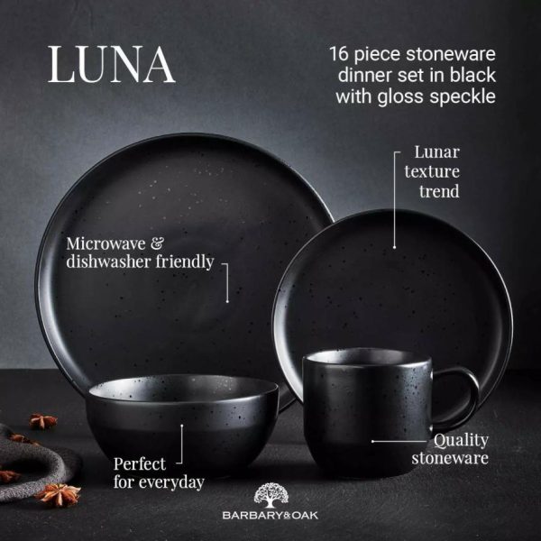 Homeware Luna Piece Dinnerware Set Black | Tower Housewares Dinnerware