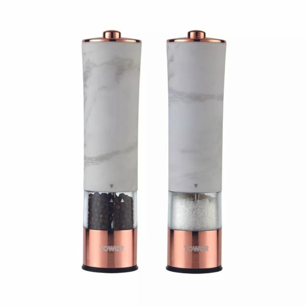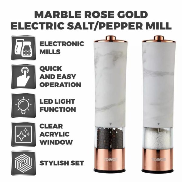 Homeware Marble Rose Gold Electric Salt & Pepper Mill Marble | Tower Housewares Condiments