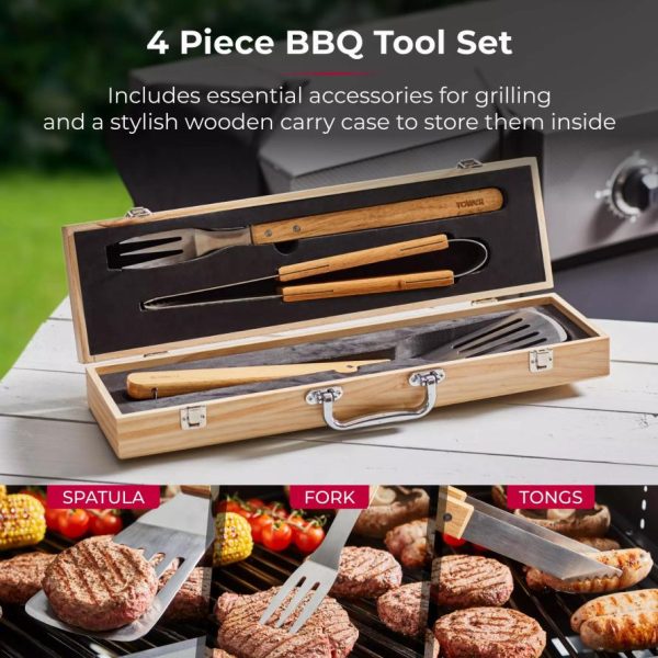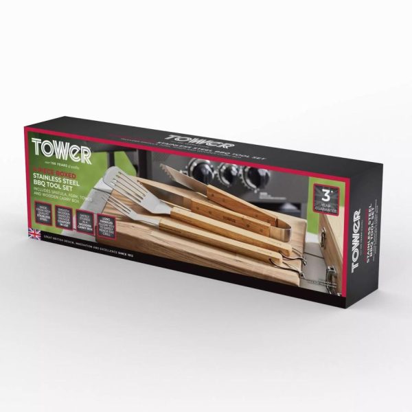 Homeware Piece Wooden BBQ Tools Set Stainless Steel | Tower Housewares Accessories
