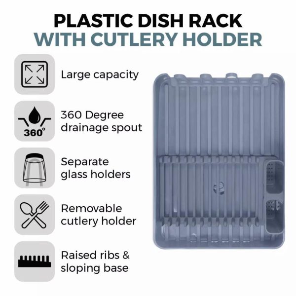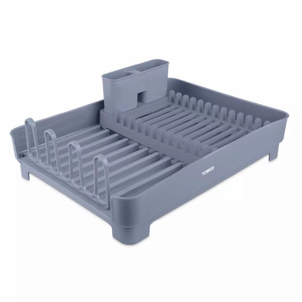 Homeware Plastic Dish Drying Rack With Cutlery Holder Grey | Tower Housewares Dish Racks & Drainers