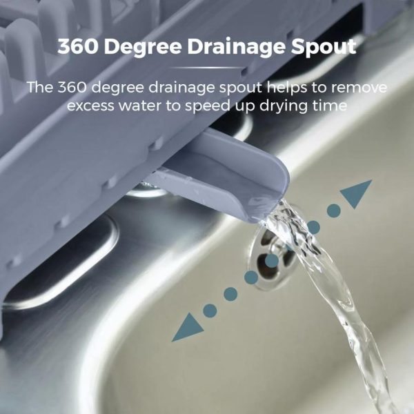 Draining spout helps remove excess water to speed up drying time