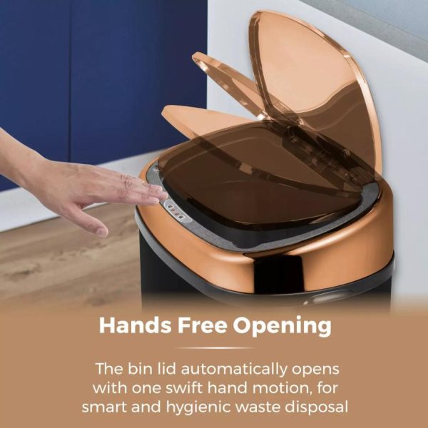 Homeware Rose Gold Litre Square Sensor Bin Black | Tower Housewares Waste Bins