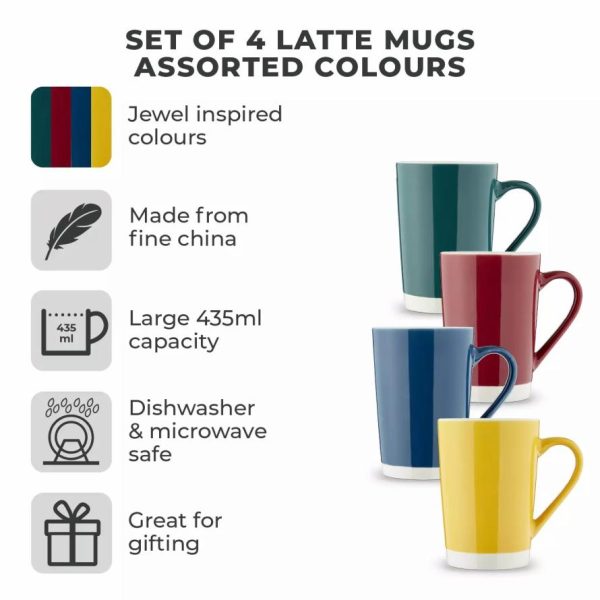 Homeware Set Of Jewel Latte Mugs Assorted Colours Assorted | Tower Housewares Mugs quantity