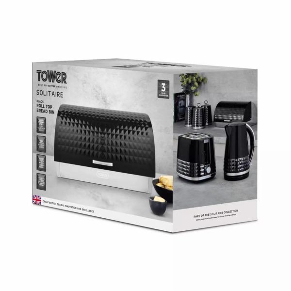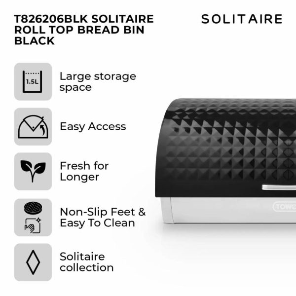 Homeware Solitaire Roll Top Bread Bin Black | Tower Housewares Bread Bins quantity