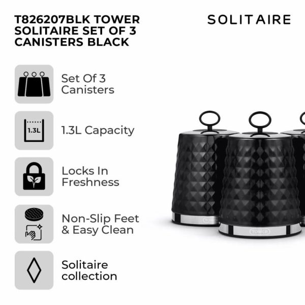 Homeware Solitaire Set Of Canisters Black | Tower Housewares Canisters quantity
