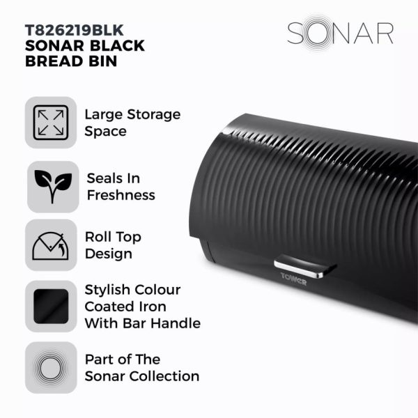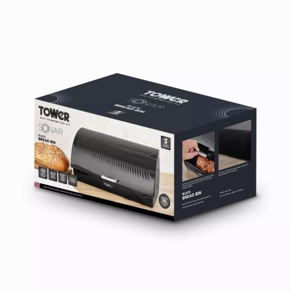 Homeware Sonar Bread Bin Black | Tower Housewares Bread Bins quantity
