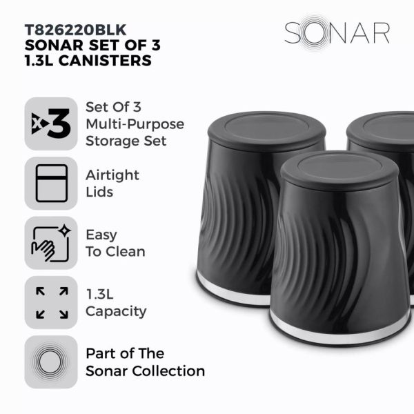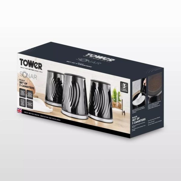 Homeware Sonar Set Of Canisters Black | Tower Housewares Canisters quantity