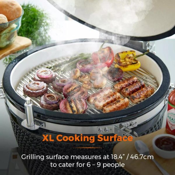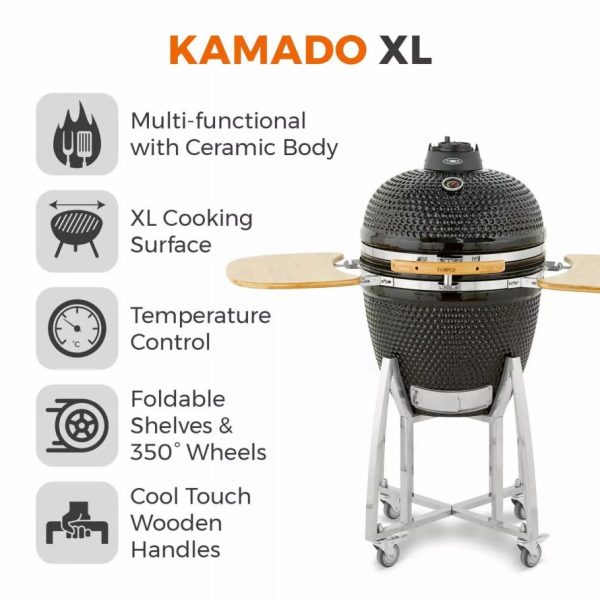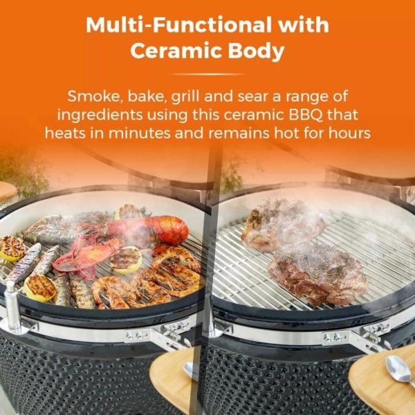 Homeware Tower Kamado XL Ceramic Charcoal BBQ With Collapsible Wooden Shelves Black | Tower Housewares Charcoal