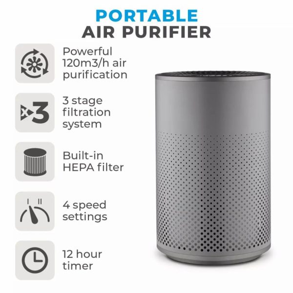 Homeware Tower Portable Desktop Air Purifier Grey | Tower Housewares Air Purifiers